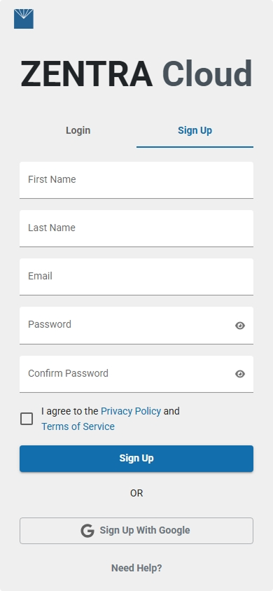 Melden Sie sich für ein ZENTRA Cloud-Konto an und erstellen Sie eine Organisation.