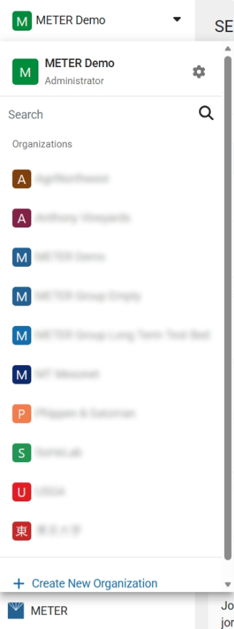 - Updated the organization dropdown with user role, gear icon to settings, and Create New Organization button.