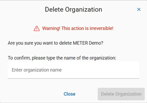 - Added a delete organization option with a field to type the name of the organization to confirm.