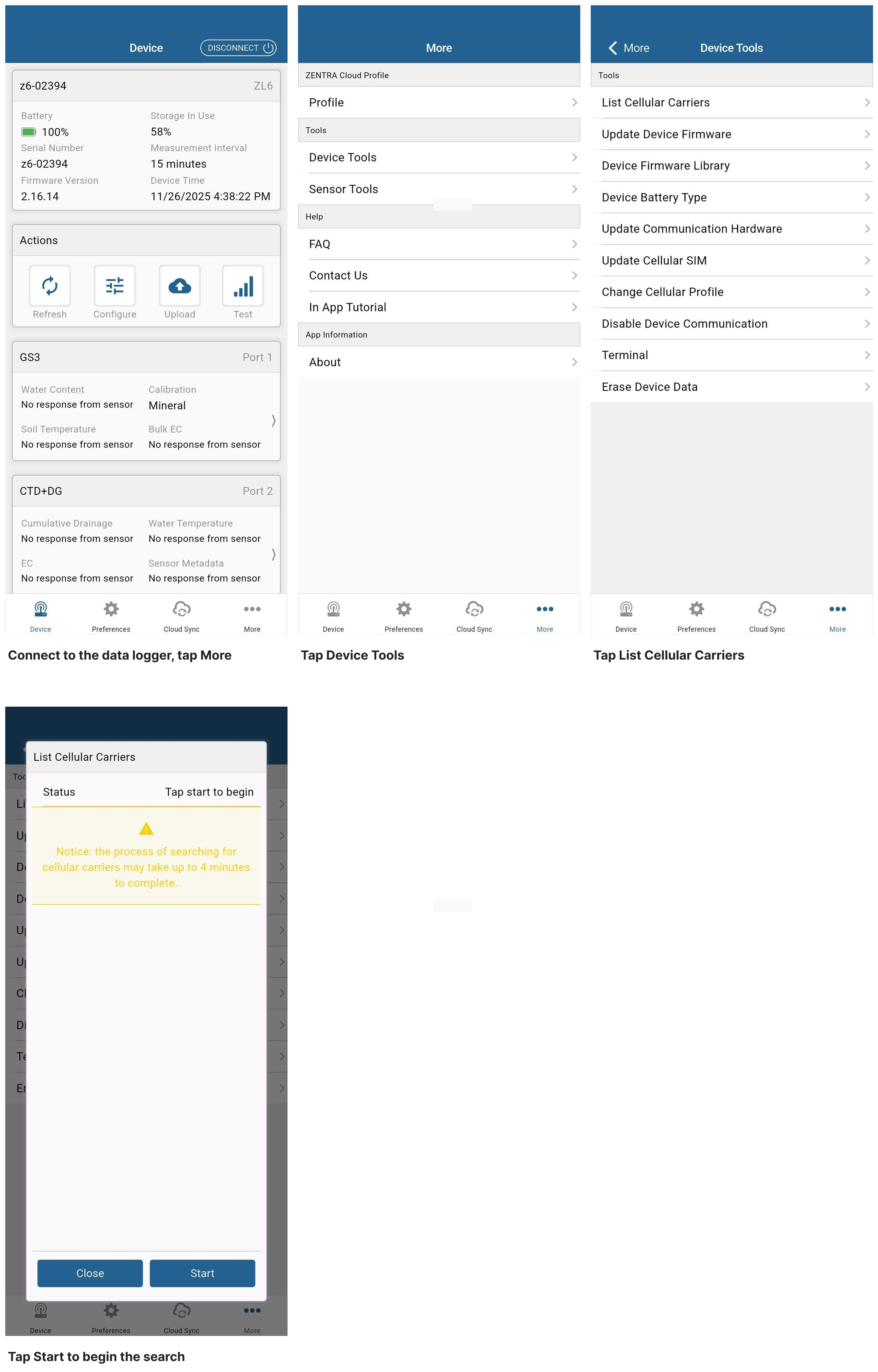 - Connect to the data logger with ZENTRA Utility Mobile.