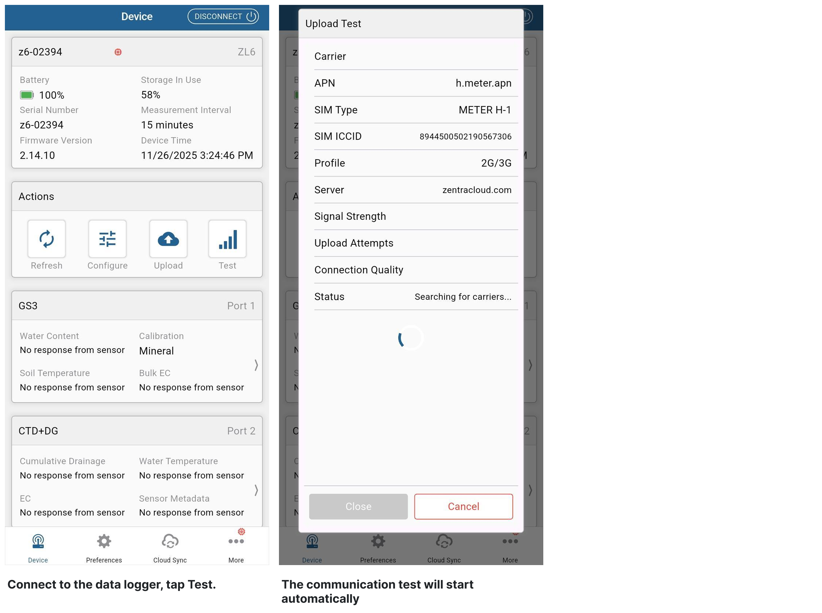 - Connect to the data logger with ZENTRA Utility Mobile.